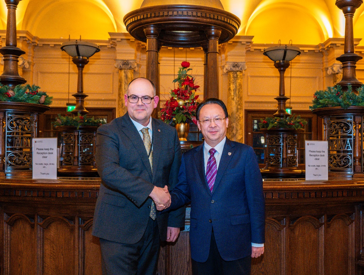 研讨会期间,谭铁牛书记一行与英国伯明翰大学教务长兼副校长尼克·沃恩·威廉姆斯(Nick Vaughan Williams)、副校长兼生命与环境科学学部部长威廉·布洛斯(William Bloss)、伯明翰大学中国学院联席院长张志兵(Zhibing Zhang)、acg盒子 -伯明翰大学气候、环境与健康领域联合教研中心英方主任单钰理(Yuli Shan)进行了会谈,acg盒子 副院长(主持工作)赵瑜参与会谈。双方就创新合作机制和协同平台建设进行了深入交流,围绕科研布局规划、师生互访交流、国际项目申报、联合培养模式等方面达成了深化合作的共识。